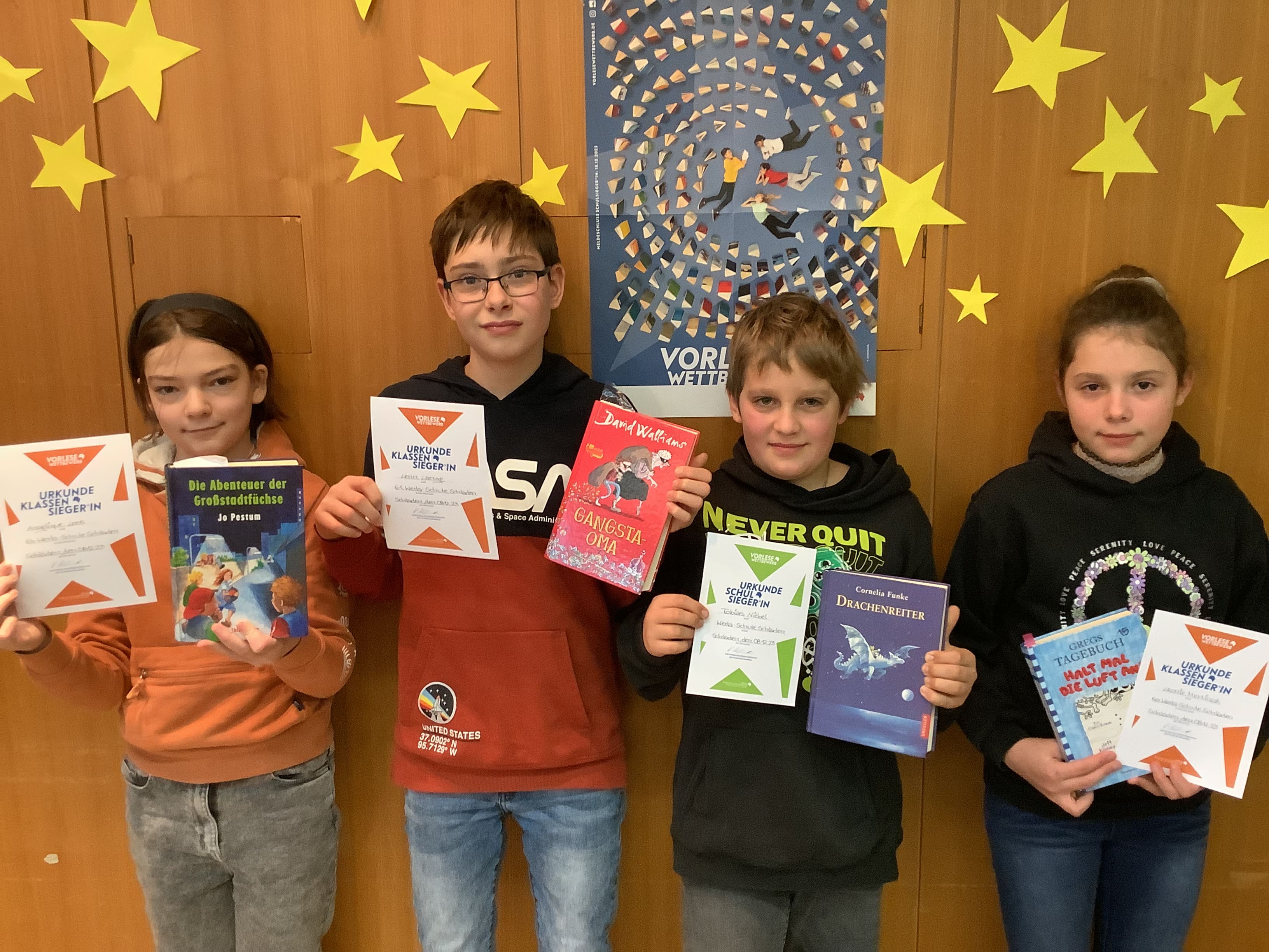 Tobias Niebel aus der 6.1 konnte die Jury ganz besonders mit seiner Vorleseleistung aus dem Buch „Drachenreiter“ von Cornelia Funke überzeugen und wurde zum besten Vorleser der Sechstklässler gekürt. Er wird nun im Februar 2024 in die nächste Wettbewerbsrunde auf regionaler Ebene einziehen: den Stadt- bzw. Kreisentscheid. Die Werla-Schule drückt ihm dafür ganz fest die Daumen.