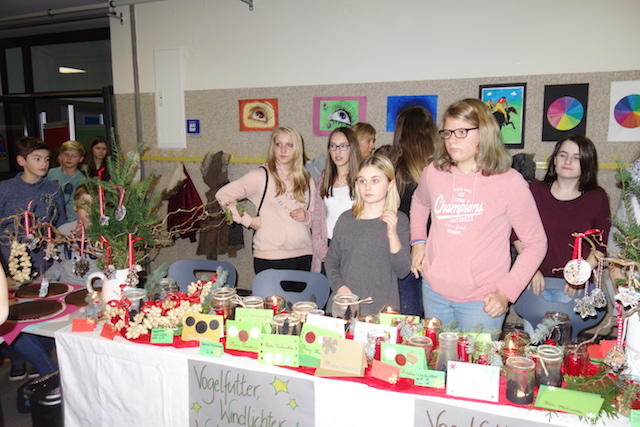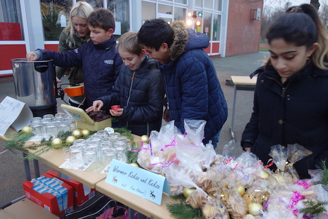 Die Schülerinnen und Schüler hatten zusammen mit ihren Lehrern die Stände aufgebaut. Aber auch der Förderverein hatte sich aktiv an der Ausgestaltung des Winterfesten mit schmackhaften Salaten sowie mit warmen und kalten Getränken beteiligt.