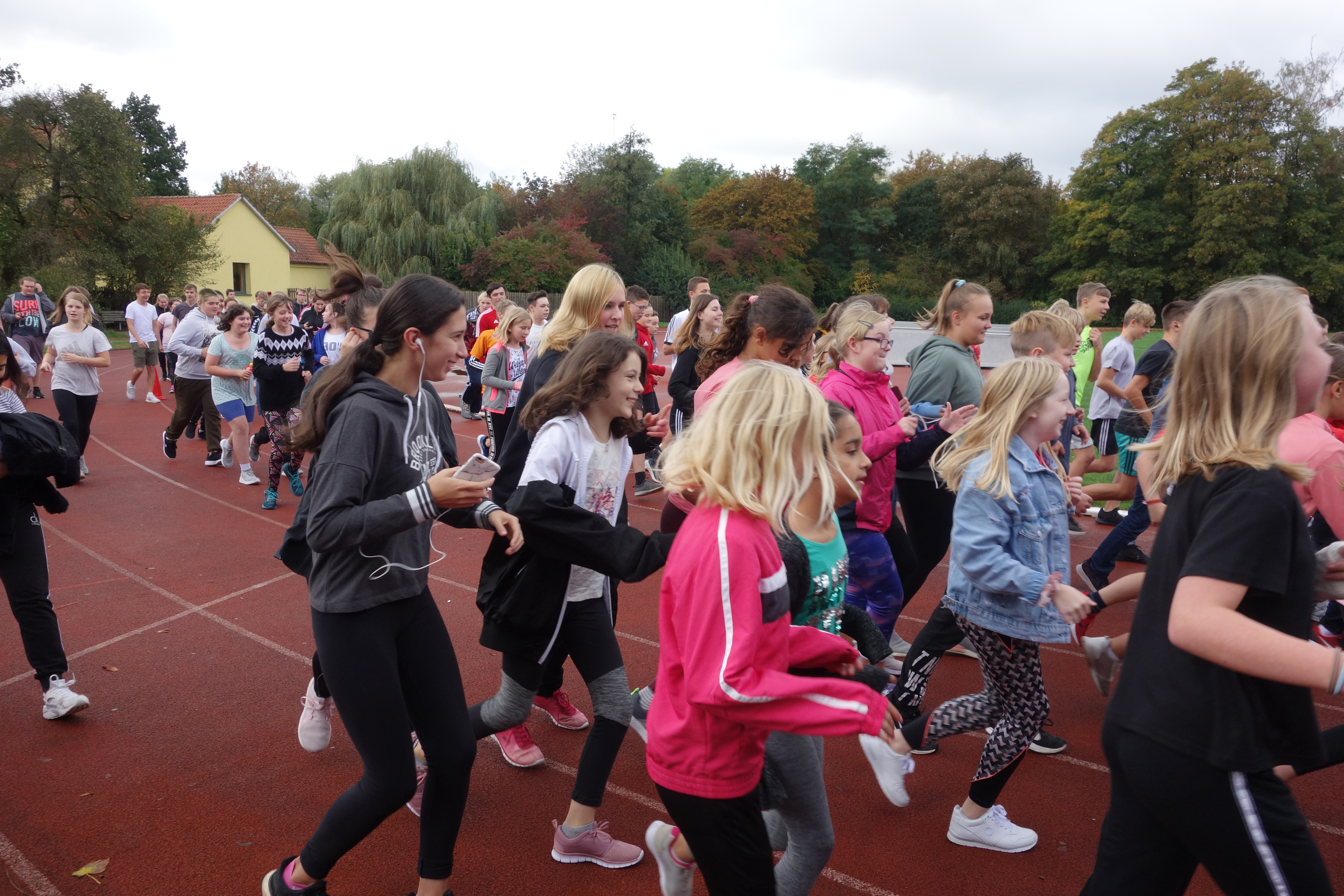 Egal, in welcher Geschwindigkeit die Fünft- bis Zehntklässler die Strecke bewältigten, Hauptsache, sie hielten 1 Stunde durch. Auch die parallel verlaufende Walking-Bahn wurde gut angenommen.