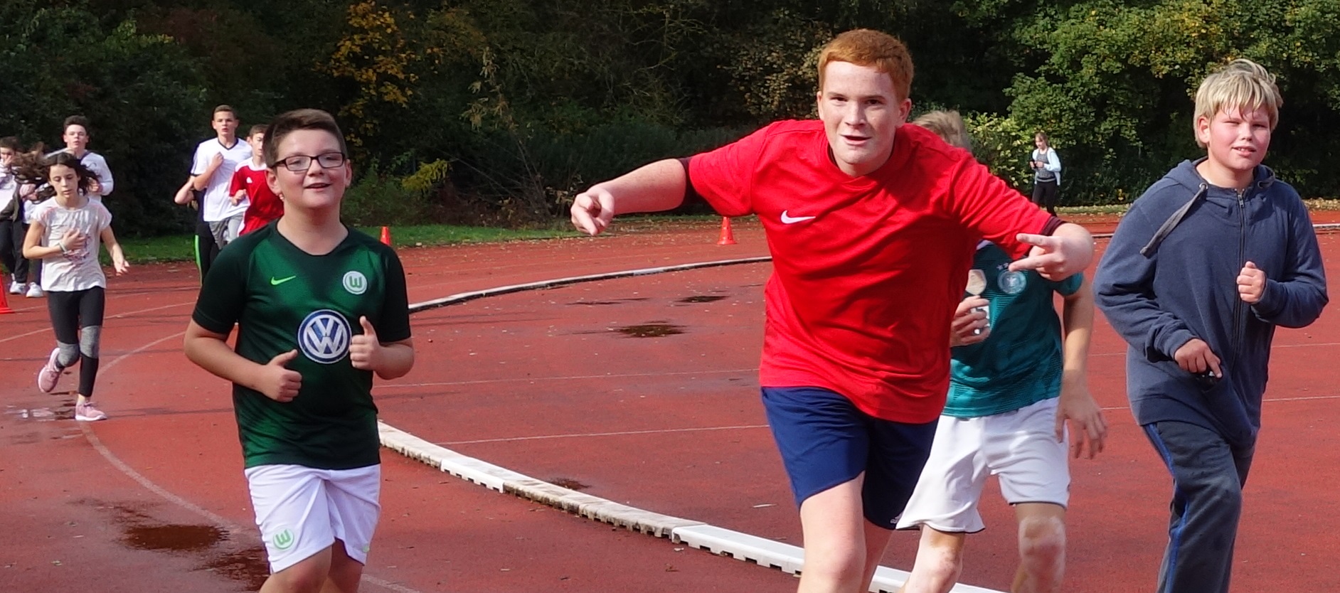 Schulleiter Achim Durwen begrüßte zum sportlichen Event; Sportlehrer Jörg Popke samt Schülerassistenz spornten mit Musik an. Auch viele Eltern sowie Angehörige waren gekommen, um ihre Schützlinge anzufeuern. Es ist eine schöne Gelegenheit für Mama und Papa sowie Oma und Opa, die Leistung ihrer Kinder bzw. Enkel vor Ort anzuschauen. Bis an die Grenzen der körperlichen Kraftanstrengung erreichten etliche Schülerinnen und Schüler glücklich das Ziel und holten sich ihr Zertifikat ab.