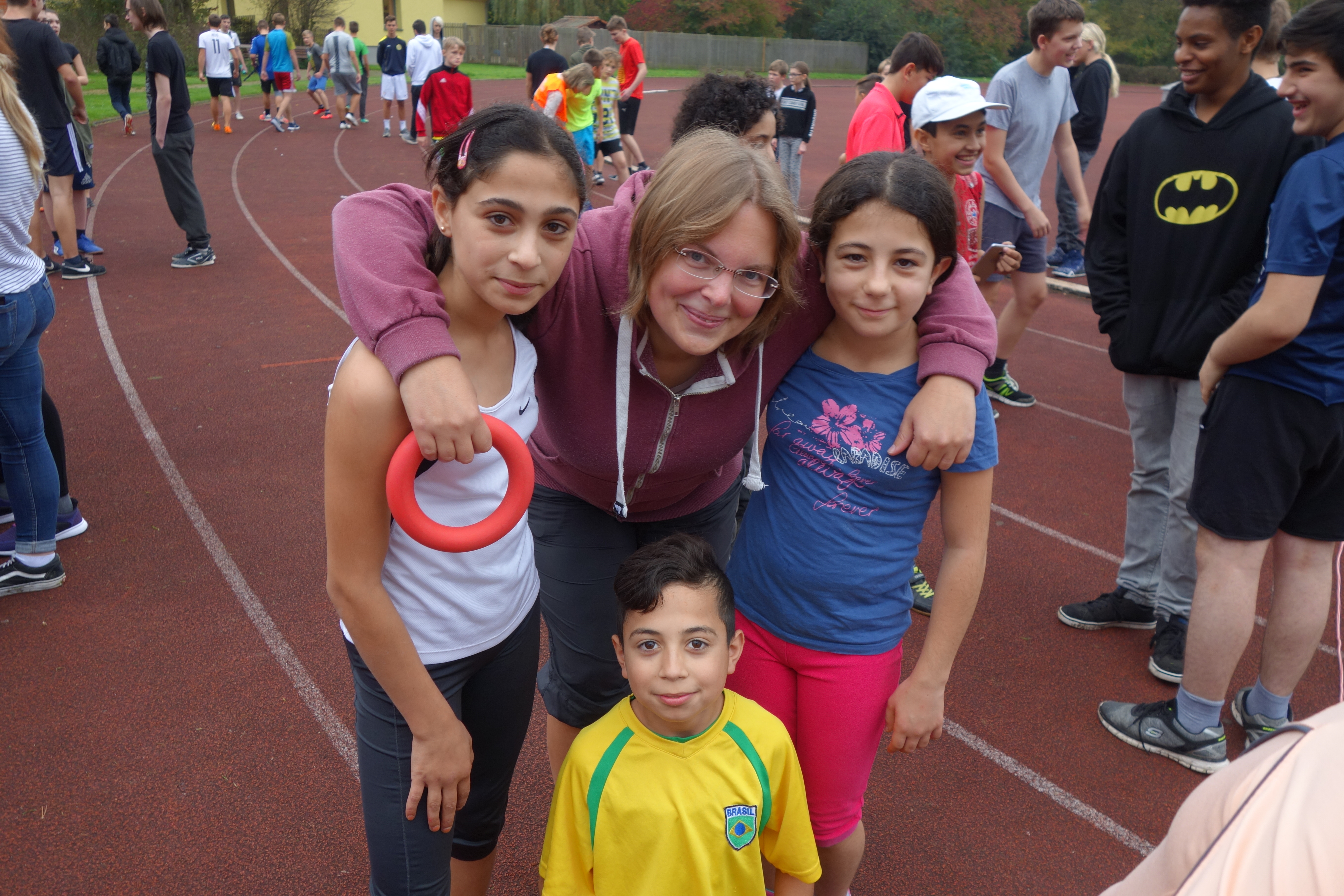 Unterstützt wurden die Jugendlichen wieder von einem Team von Lehrkräften, die staffelmäßig jeweils 10 Minuten in der Laufrunde begleiteten: Malin Fritsch, Sarah Effenberger, Mareike Hübner, Birte Heeck, Elisabeth König und Katja Heßler. Peter Müller, der langjährige ehemalige Lehrer-Kollege und Marathon-Läufer war die ganze Zeit mit auf der Bahn und glänzte mit hervorragender Kondition.