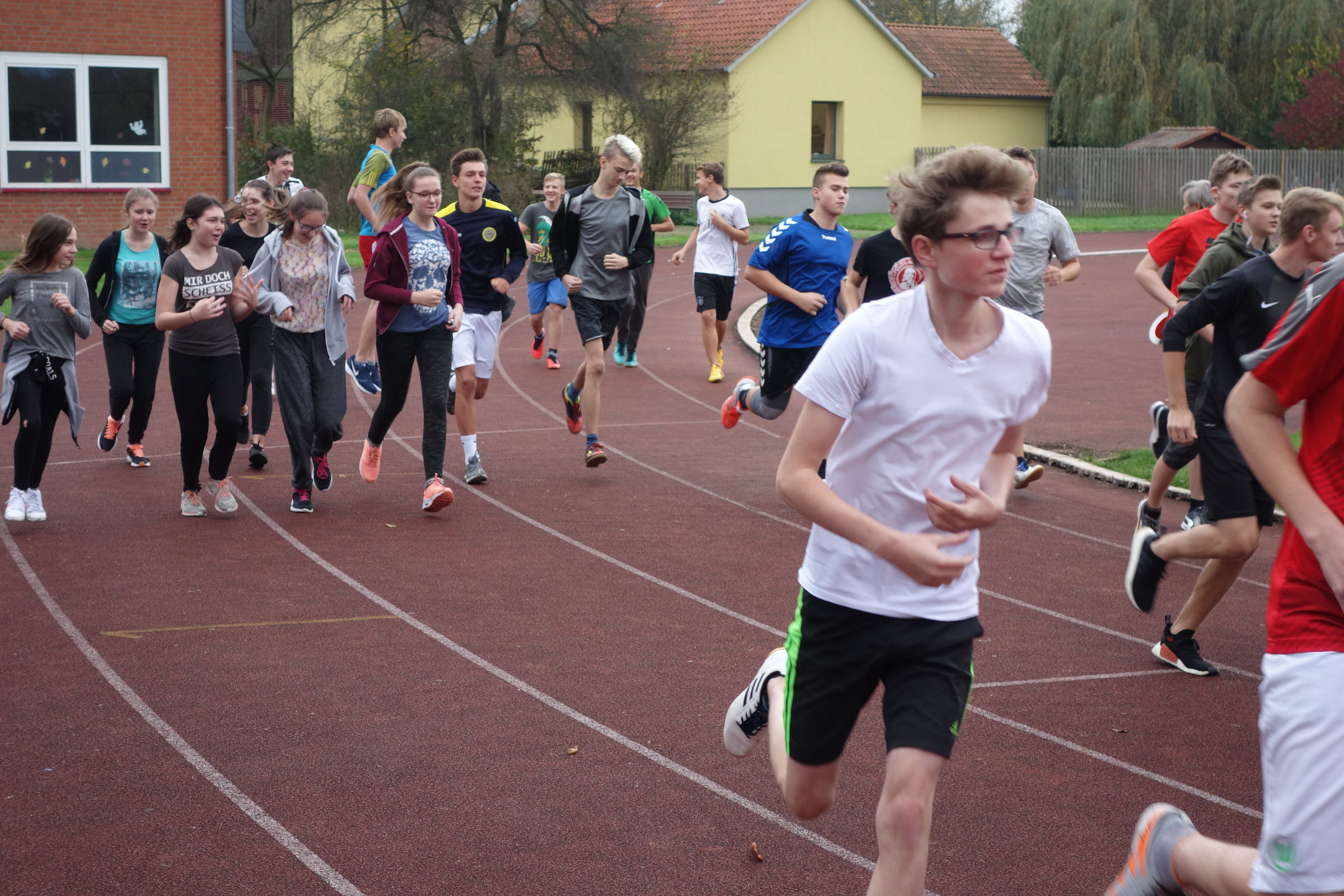 Egal, in welcher Geschwindigkeit die Fünft- bis Zehntklässler die Strecke bewältigten, Hauptsache, sie hielten 1 Stunde durch. Vorweg lief Sportlehrerin Malin Fritsch zunächst die sogenannte „Safety-Car-Runde“ zur Einstimmung. Sport-Fachleiter Thomas Muske begrüßte zum sportlichen Event; Sportlehrer Jörg Popke moderierte und animierte. Auch viele Eltern sowie Angehörige waren gekommen, um ihre Schützlinge anzufeuern. Es ist eine schöne Gelegenheit für Mama und Papa sowie Oma und Opa, die Leistung ihrer Kinder bzw. Enkel vor Ort zu sehen.